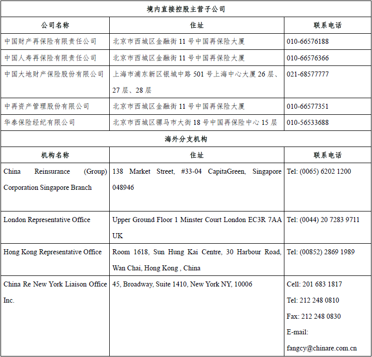 子公司和分支机构住址及联系电话