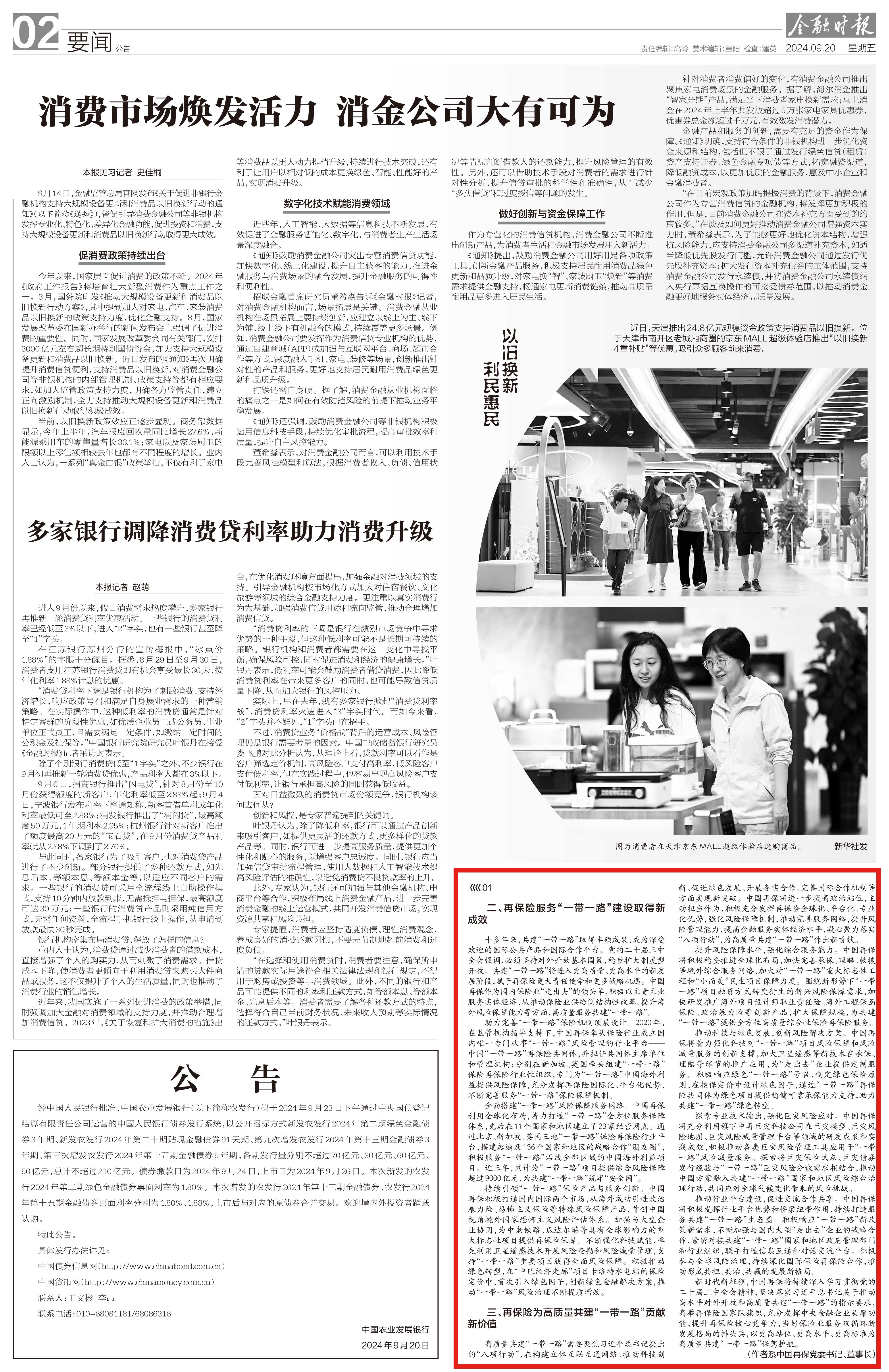 党委书记、董事长和春雷署名文章《强化再保险功能作用 高质量服务共建“一带一路”》。现全文转发,以飨读者。
