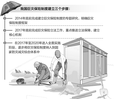 按照建立巨灾保险制度“三步走”的规划,2014年底,我国已完成“建立巨灾保险制度”专题研究工作,明确了巨灾保险制度框架。如 今则已进入“第二步”,即在2017年底前完成巨灾保险立法工作,重点推进立法保障、建立核心机制。其中,风险分散机制是巨灾保险制度的核心环节,“风险 分散机制就是利用保险的正外部性特征,强化风险事前的干预和管理,将部分行政管理成本外化给保险行业。”国务院应急管理专家组组长、全国减灾委副主任闪淳 昌表示。